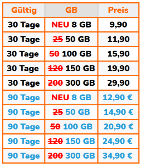Sie erhalten unglaubliche 300 GB gültig für 30 Tage für nur 29,90 €